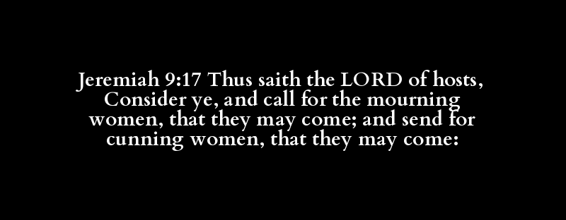 Jeremiah 9:17 Thus saith the LORD of hosts, Consider ye, and call for the mourning women, that they may come; and send for cunning women, that they may come: