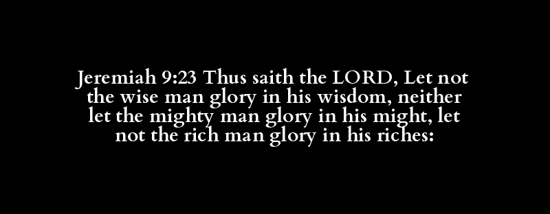 Jeremiah 9:23 Thus saith the LORD, Let not the wise man glory in his wisdom, neither let the mighty man glory in his might, let not the rich man glory in his riches: