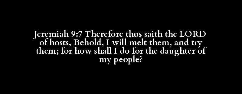 Jeremiah 9:7 Therefore thus saith the LORD of hosts, Behold, I will melt them, and try them; for how shall I do for the daughter of my people?