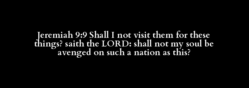 Jeremiah 9:9 Shall I not visit them for these things? saith the LORD: shall not my soul be avenged on such a nation as this?