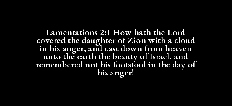 Lamentations 2:1 How hath the Lord covered the daughter of Zion with a cloud in his anger, and cast down from heaven unto the earth the beauty of Israel, and remembered not his footstool in the day of his anger!