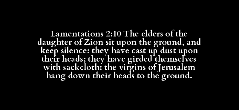 Lamentations 2:10 The elders of the daughter of Zion sit upon the ground, and keep silence: they have cast up dust upon their heads; they have girded themselves with sackcloth: the virgins of Jerusalem hang down their heads to the ground.