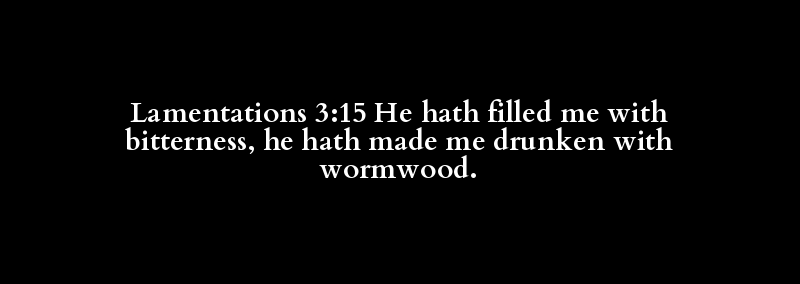 Lamentations 3:15 He hath filled me with bitterness, he hath made me drunken with wormwood.