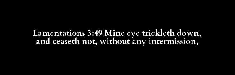 Lamentations 3:49 Mine eye trickleth down, and ceaseth not, without any intermission,