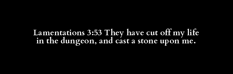 Lamentations 3:53 They have cut off my life in the dungeon, and cast a stone upon me.