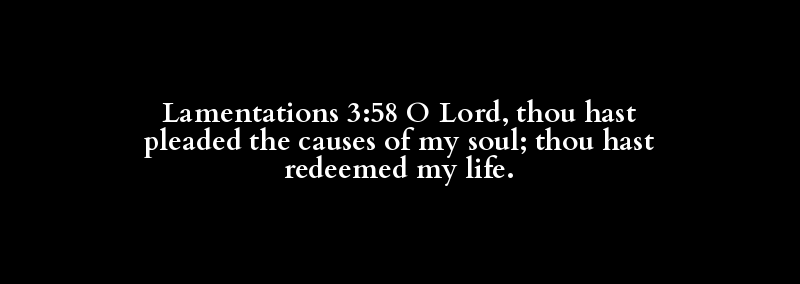 Lamentations 3:58 O Lord, thou hast pleaded the causes of my soul; thou hast redeemed my life.
