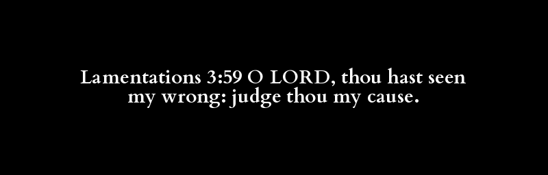 Lamentations 3:59 O LORD, thou hast seen my wrong: judge thou my cause.