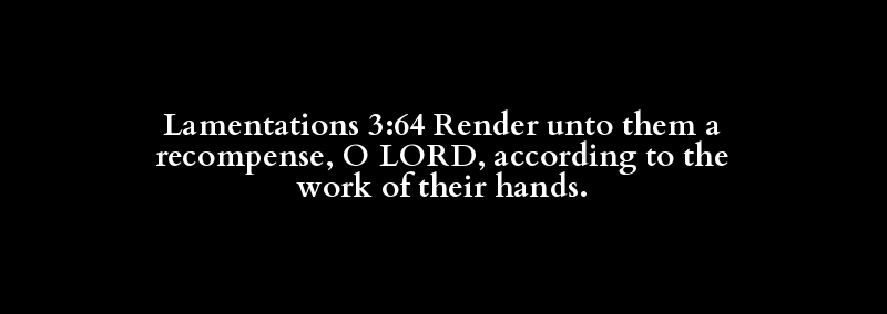 Lamentations 3:64 Render unto them a recompense, O LORD, according to the work of their hands.