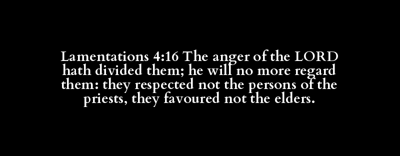 Lamentations 4:16 The anger of the LORD hath divided them; he will no more regard them: they respected not the persons of the priests, they favoured not the elders.