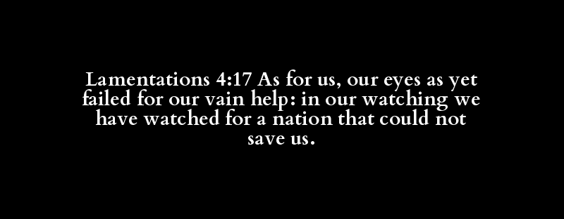 Lamentations 4:17 As for us, our eyes as yet failed for our vain help: in our watching we have watched for a nation that could not save us.