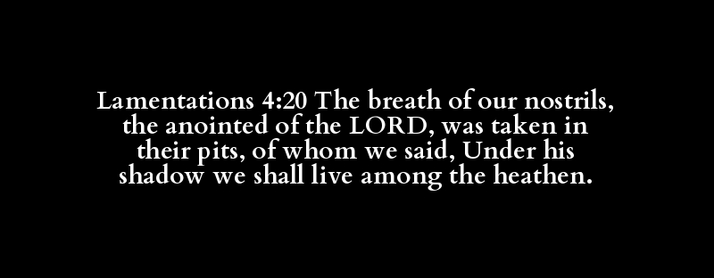 Lamentations 4:20 The breath of our nostrils, the anointed of the LORD, was taken in their pits, of whom we said, Under his shadow we shall live among the heathen.
