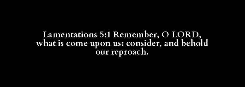 Lamentations 5:1 Remember, O LORD, what is come upon us: consider, and behold our reproach.