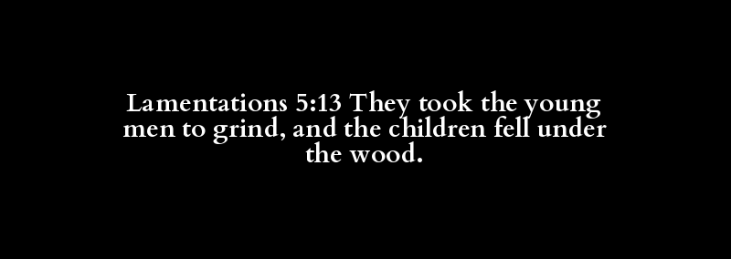 Lamentations 5:13 They took the young men to grind, and the children fell under the wood.