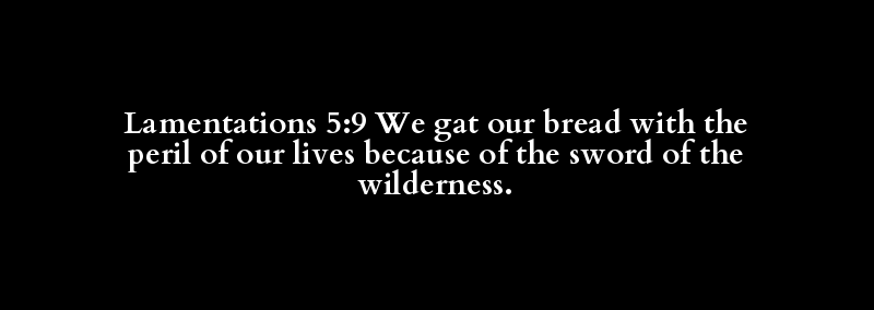 Lamentations 5:9 We gat our bread with the peril of our lives because of the sword of the wilderness.