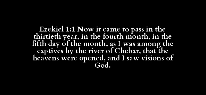 Ezekiel 1:1 Now it came to pass in the thirtieth year, in the fourth month, in the fifth day of the month, as I was among the captives by the river of Chebar, that the heavens were opened, and I saw visions of God.
