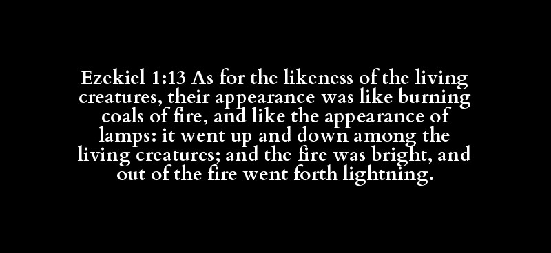 Ezekiel 1:13 As for the likeness of the living creatures, their appearance was like burning coals of fire, and like the appearance of lamps: it went up and down among the living creatures; and the fire was bright, and out of the fire went forth lightning.