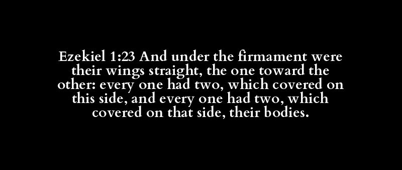 Ezekiel 1:23 And under the firmament were their wings straight, the one toward the other: every one had two, which covered on this side, and every one had two, which covered on that side, their bodies.