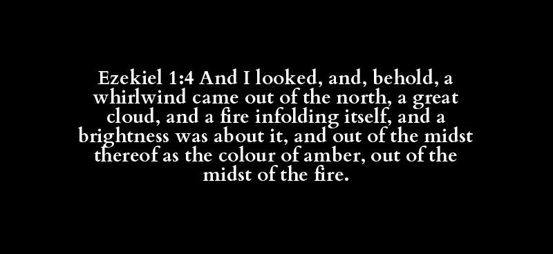 Ezekiel 1:4 And I looked, and, behold, a whirlwind came out of the north, a great cloud, and a fire infolding itself, and a brightness was about it, and out of the midst thereof as the colour of amber, out of the midst of the fire.