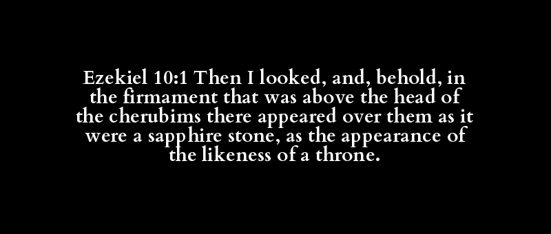 Ezekiel 10:1 Then I looked, and, behold, in the firmament that was above the head of the cherubims there appeared over them as it were a sapphire stone, as the appearance of the likeness of a throne.