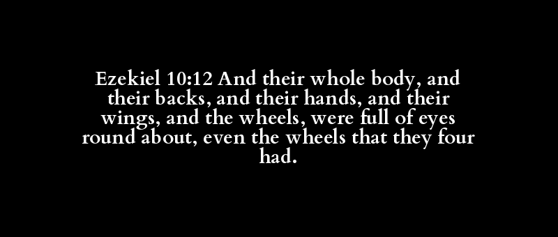 Ezekiel 10:12 And their whole body, and their backs, and their hands, and their wings, and the wheels, were full of eyes round about, even the wheels that they four had.