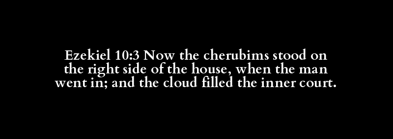 Ezekiel 10:3 Now the cherubims stood on the right side of the house, when the man went in; and the cloud filled the inner court.