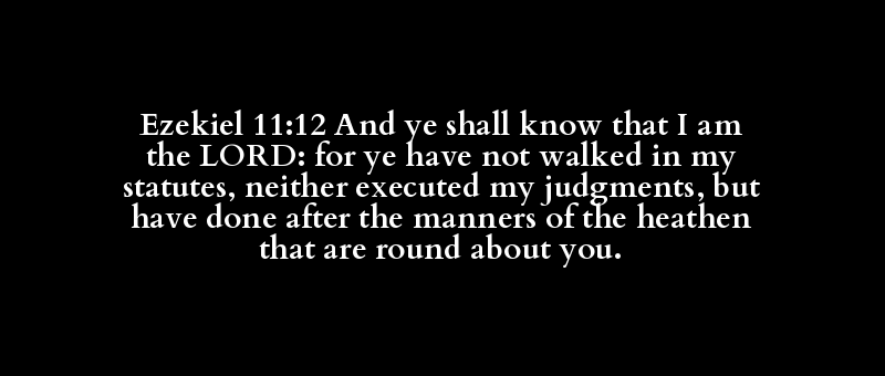 Ezekiel 11:12 And ye shall know that I am the LORD: for ye have not walked in my statutes, neither executed my judgments, but have done after the manners of the heathen that are round about you.