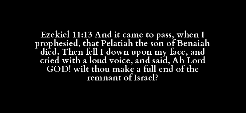 Ezekiel 11:13 And it came to pass, when I prophesied, that Pelatiah the son of Benaiah died. Then fell I down upon my face, and cried with a loud voice, and said, Ah Lord GOD! wilt thou make a full end of the remnant of Israel?