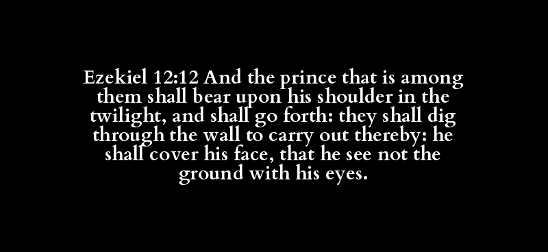 Ezekiel 12:12 And the prince that is among them shall bear upon his shoulder in the twilight, and shall go forth: they shall dig through the wall to carry out thereby: he shall cover his face, that he see not the ground with his eyes.