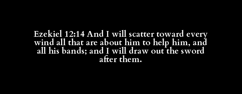 Ezekiel 12:14 And I will scatter toward every wind all that are about him to help him, and all his bands; and I will draw out the sword after them.