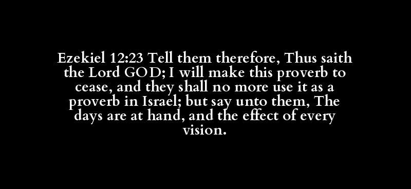 Ezekiel 12:23 Tell them therefore, Thus saith the Lord GOD; I will make this proverb to cease, and they shall no more use it as a proverb in Israel; but say unto them, The days are at hand, and the effect of every vision.