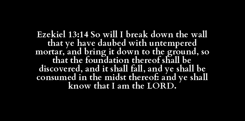 Ezekiel 13:14 So will I break down the wall that ye have daubed with untempered mortar, and bring it down to the ground, so that the foundation thereof shall be discovered, and it shall fall, and ye shall be consumed in the midst thereof: and ye shall know that I am the LORD.