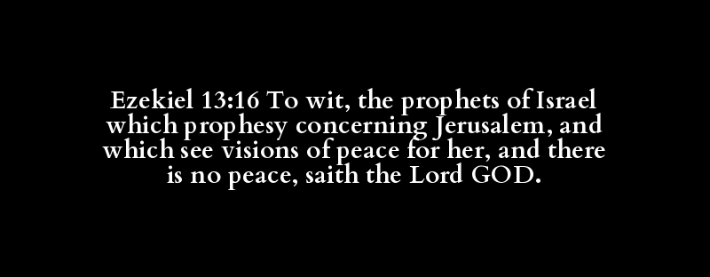 Ezekiel 13:16 To wit, the prophets of Israel which prophesy concerning Jerusalem, and which see visions of peace for her, and there is no peace, saith the Lord GOD.