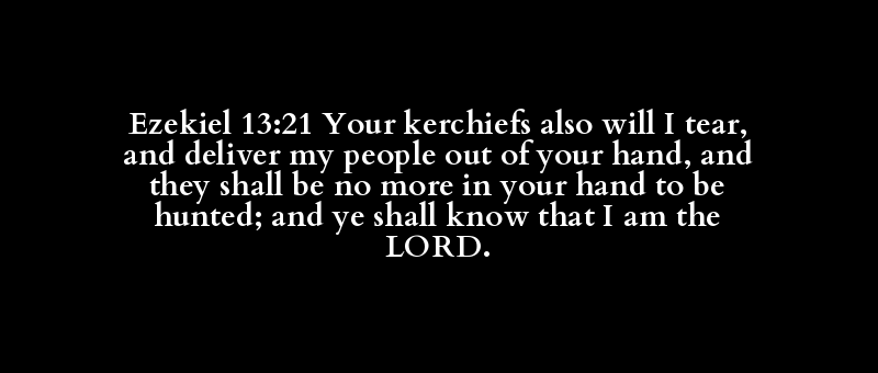 Ezekiel 13:21 Your kerchiefs also will I tear, and deliver my people out of your hand, and they shall be no more in your hand to be hunted; and ye shall know that I am the LORD.