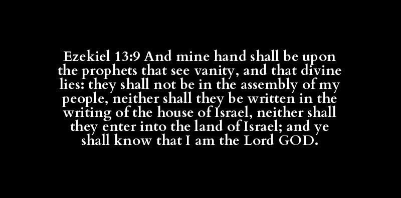Ezekiel 13:9 And mine hand shall be upon the prophets that see vanity, and that divine lies: they shall not be in the assembly of my people, neither shall they be written in the writing of the house of Israel, neither shall they enter into the land of Israel; and ye shall know that I am the Lord GOD.