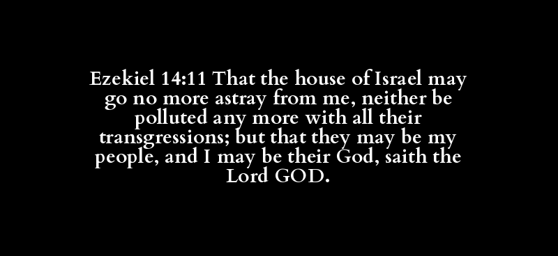 Ezekiel 14:11 That the house of Israel may go no more astray from me, neither be polluted any more with all their transgressions; but that they may be my people, and I may be their God, saith the Lord GOD.