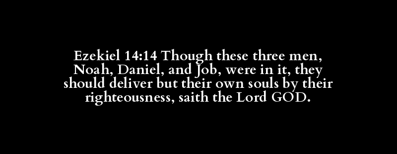 Ezekiel 14:14 Though these three men, Noah, Daniel, and Job, were in it, they should deliver but their own souls by their righteousness, saith the Lord GOD.