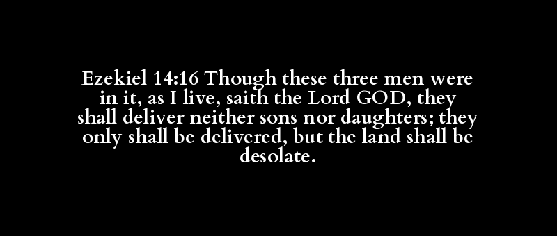 Ezekiel 14:16 Though these three men were in it, as I live, saith the Lord GOD, they shall deliver neither sons nor daughters; they only shall be delivered, but the land shall be desolate.