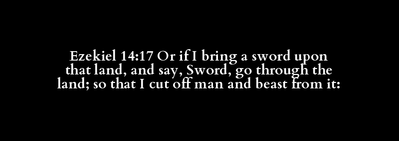 Ezekiel 14:17 Or if I bring a sword upon that land, and say, Sword, go through the land; so that I cut off man and beast from it: