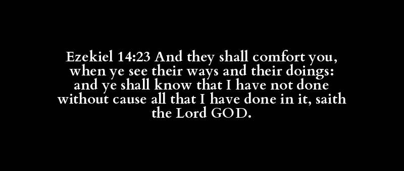 Ezekiel 14:23 And they shall comfort you, when ye see their ways and their doings: and ye shall know that I have not done without cause all that I have done in it, saith the Lord GOD.