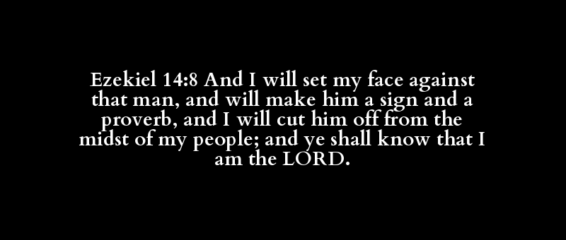 Ezekiel 14:8 And I will set my face against that man, and will make him a sign and a proverb, and I will cut him off from the midst of my people; and ye shall know that I am the LORD.