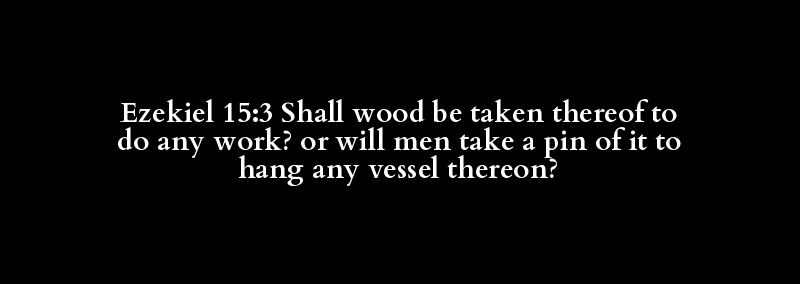 Ezekiel 15:3 Shall wood be taken thereof to do any work? or will men take a pin of it to hang any vessel thereon?
