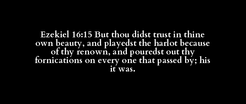 Ezekiel 16:15 But thou didst trust in thine own beauty, and playedst the harlot because of thy renown, and pouredst out thy fornications on every one that passed by; his it was.