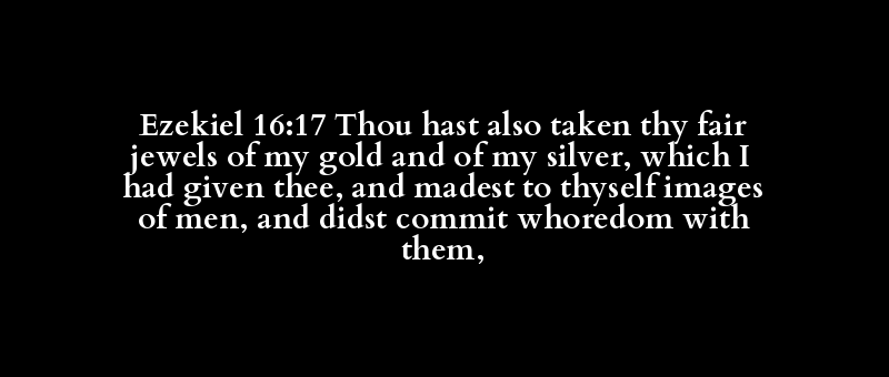 Ezekiel 16:17 Thou hast also taken thy fair jewels of my gold and of my silver, which I had given thee, and madest to thyself images of men, and didst commit whoredom with them,