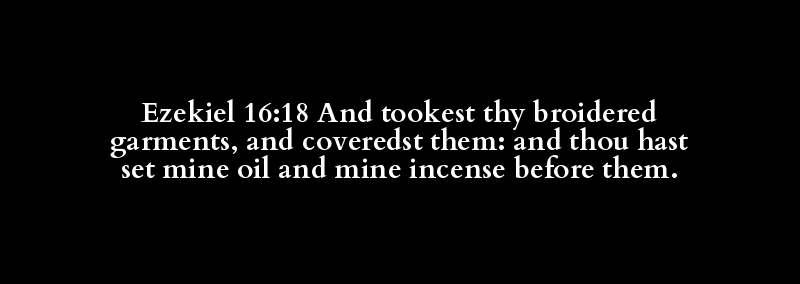 Ezekiel 16:18 And tookest thy broidered garments, and coveredst them: and thou hast set mine oil and mine incense before them.