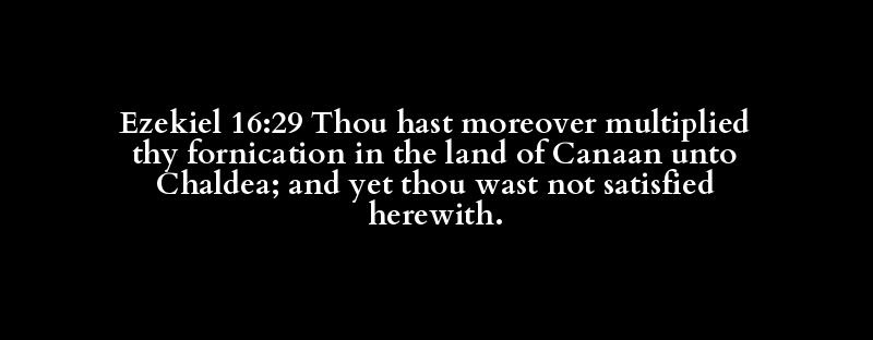 Ezekiel 16:29 Thou hast moreover multiplied thy fornication in the land of Canaan unto Chaldea; and yet thou wast not satisfied herewith.