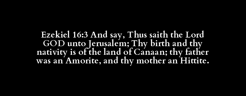 Ezekiel 16:3 And say, Thus saith the Lord GOD unto Jerusalem; Thy birth and thy nativity is of the land of Canaan; thy father was an Amorite, and thy mother an Hittite.