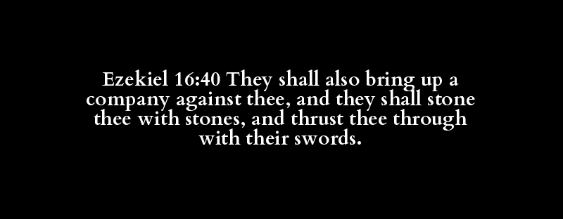 Ezekiel 16:40 They shall also bring up a company against thee, and they shall stone thee with stones, and thrust thee through with their swords.