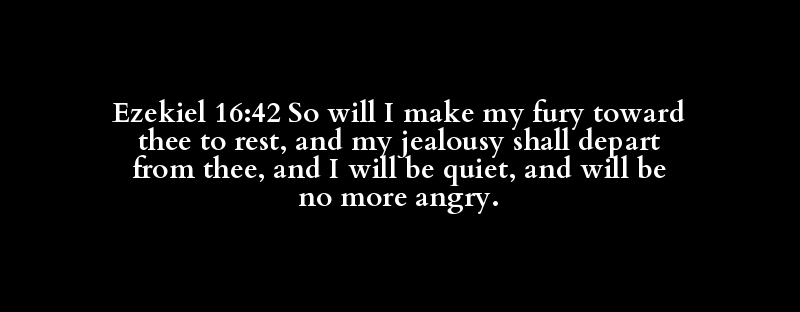 Ezekiel 16:42 So will I make my fury toward thee to rest, and my jealousy shall depart from thee, and I will be quiet, and will be no more angry.