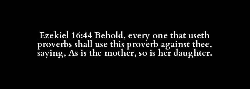 Ezekiel 16:44 Behold, every one that useth proverbs shall use this proverb against thee, saying, As is the mother, so is her daughter.