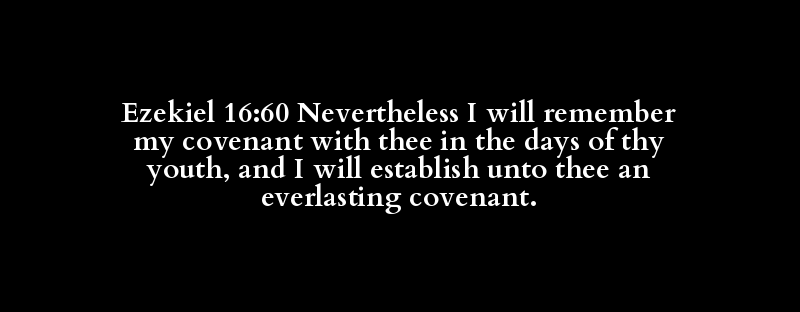 Ezekiel 16:60 Nevertheless I will remember my covenant with thee in the days of thy youth, and I will establish unto thee an everlasting covenant.